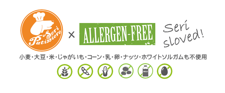 【材料】食物アレルギー対応粉、タピオカ、無塩マーガリン、ココナッツミルク、なたね油、カナダ産メープルシロップ