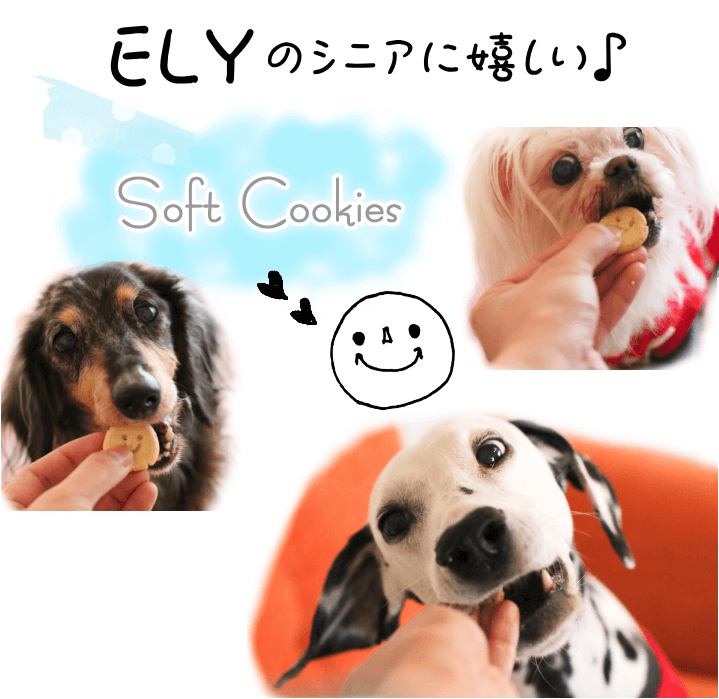 固いおやつが苦手になった、SERIの愛犬エリーのために開発したやわらか〜い、シニアも嬉しい♪ELYのソフトCookieシリーズ!